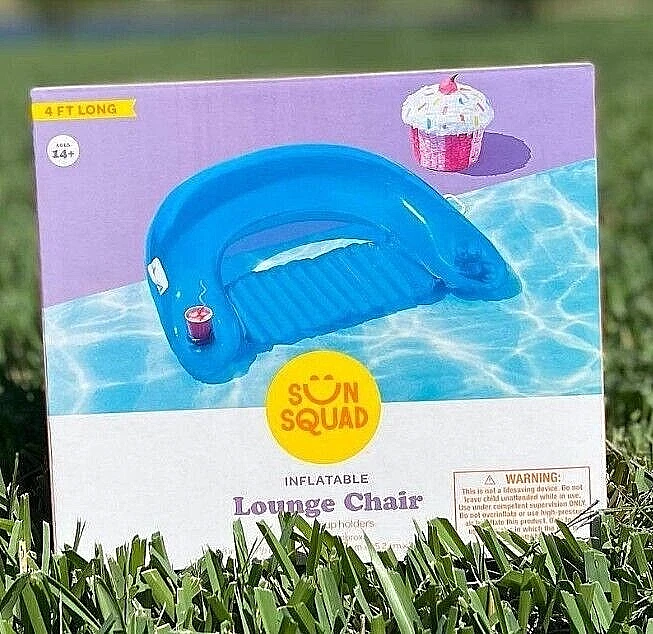 Inflatable Lounge Chair With Cup Holders Blue Sun Squad New Ebay